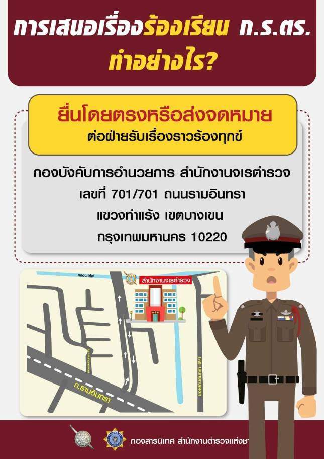 👉ทำได้โดยยื่นโดยตรง หรือ ส่งจดหมาย ระบุถึง “ประธาน ก.ร.ตร.” หรือ “กรรมการ ก.ร.ตร.”