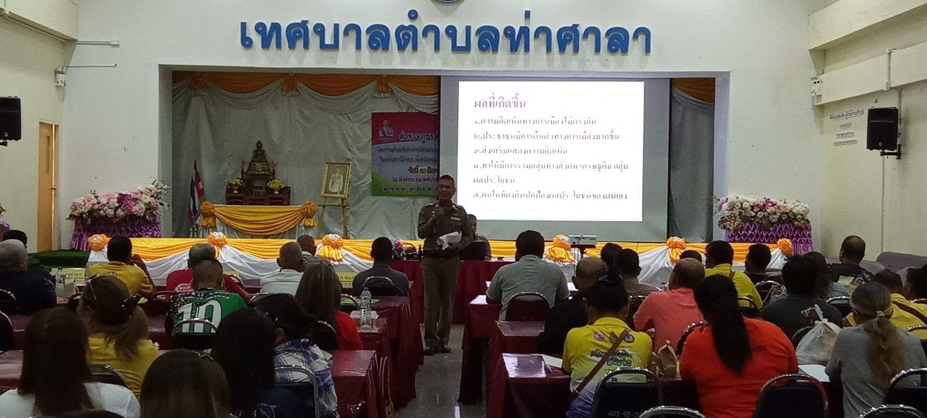 เมื่อวันที่ ๒๖ ธันวาคม  ๒๕๖๗ เวลา ๐๘.๐๐ – ๑๖.๐๐ น.นายศักดิ์ชัยชาย นันทเกษตร ประธาน กต.ตร.สภ.ท่าศาลา พร้อมด้วย พ.ต.อ.อภิชาต  จันทร์สำเร็จ ผกก. สภ.ท่าศาลา และ คณะกรรมการ กต.ตร.สภ.ท่าศาลา ร่วมดเป็นเกียรติ และเข้าอบรมโครงการสร้างเครือข่ายการมีส่วนรวมของประชาชนในการป้องกันอาชญากรรม ระดับตำบล เพื่อสนับสนุนการป้องกันอาชญากรรตามนโยบายการขับเคลื่อนไทยไปด้วยกัน ณ ห้องประชุม สำนักงานเทศบาลตำบลท่าศาลา